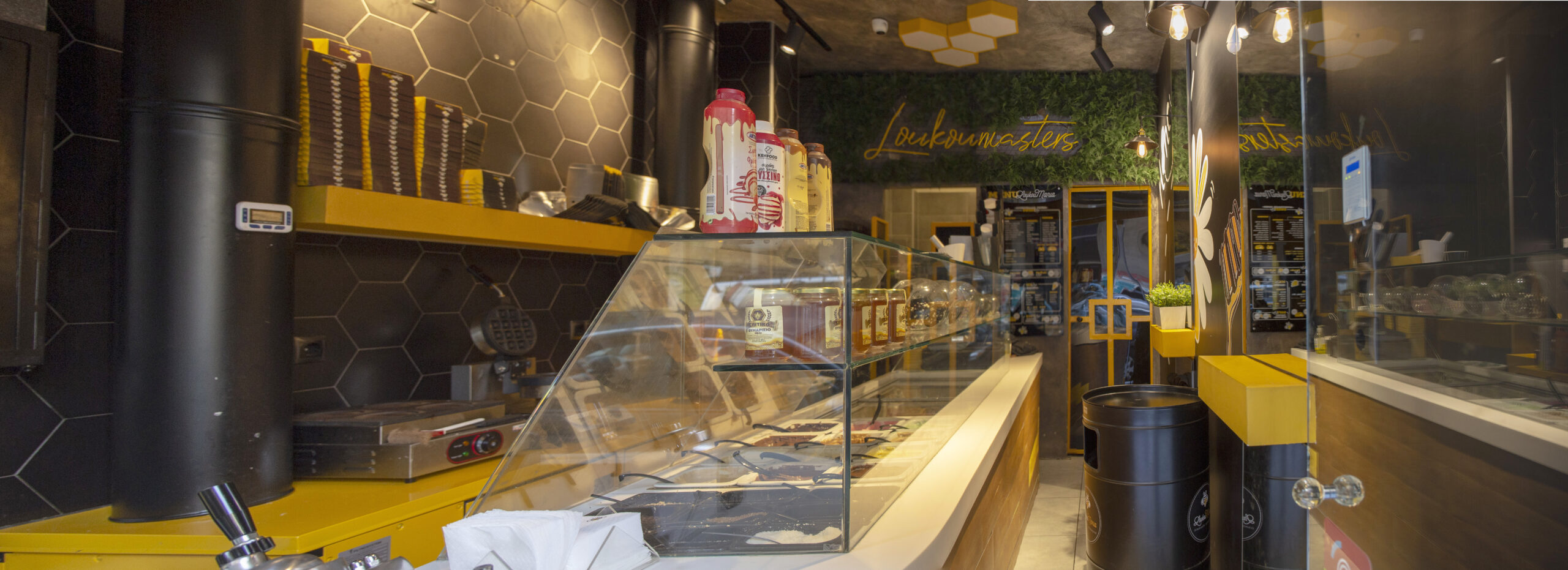 Ένας χώρος που σε αγκαλιάζει πριν καν δοκιμάσεις το γλυκό Urban αισθητική με comfort διάθεση — το τέλειο σκηνικό για ζεστό λουκουμά.